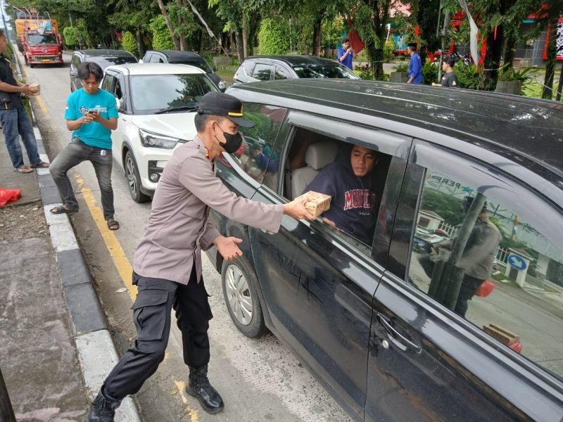 SUARADARING.COM, BARRU – Satuan Binmas Polres Barru, Sulawesi selatan (Sulsel) bersama dengan komunitas motor YNCI membagi-bagikan takjil kepada pengendara yang melintas di jalan.