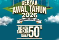 SUARADARING.COM – PT Perusahaan Listrik Negara (PLN) kembali memberikan diskon tambah daya listrik sebesar 50 persen melalui program Gebyar Awal Tahun 2026 bertajuk “Tahun…