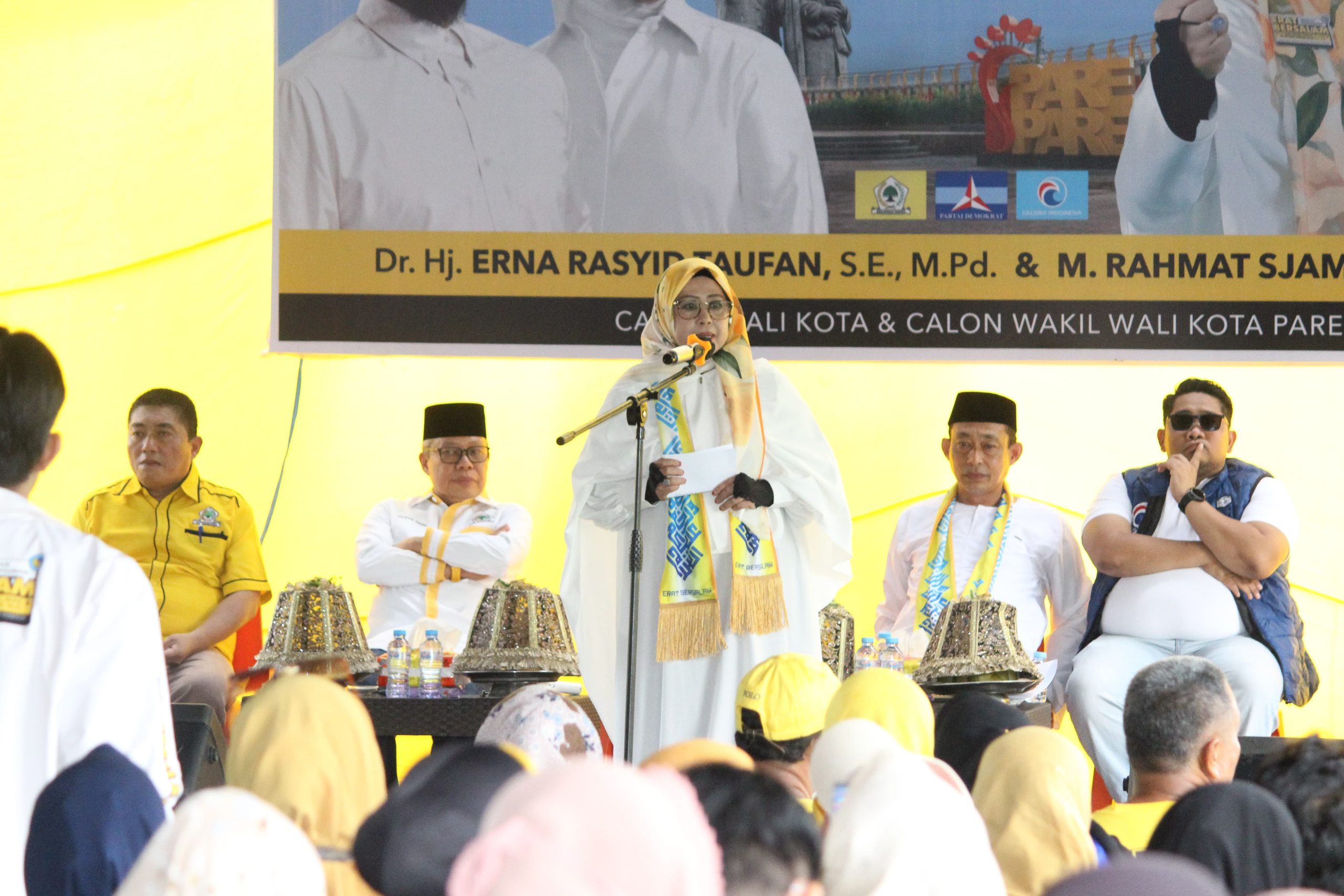 SUARADARING.COM, PAREPARE – Pasangan calon Wali Kota dan Wakil Wali Kota Parepare, Hj. Erna Rasyid Taufan dan Rahmat Sjamsu Alam, yang mengusung tagline “Erat…