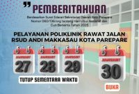 SUARADARING.COM, PAREPARE – Momentum hari libur nasional dan cuti bersama pada 27, 28, 29 Januari 2025, akan tetap dioptimalkan RSUD Andi Makkasau Kota Parepare,…